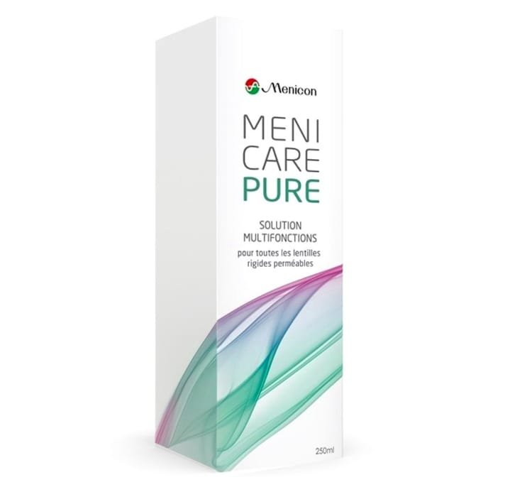Menicare Pure est une solution multifonctions haut de gamme spécialement conçue pour l’entretien quotidien des lentilles de contact rigides perméables au gaz (RPG). Développée par Menicon, elle assure un nettoyage efficace, une désinfection optimale et une hydratation durable, tout en respectant la sensibilité oculaire.